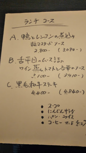 Read more平日のランチ12:00に、当日朝に電話して予約して訪問しました。たまに貸切や臨時休業にかち合いますから電話してからが安心かも。(過去二回ほど経験有り。。。) 引き戸を開けて民家に土足でお邪魔します。フレンチっぽくない入り方ですが、店内は雰囲気のあるオシャレ古民家!隠れ家風でしょうか。別に隠れてはないですが、路地奥なので、何だか隠れ家に来た通な人な気分です。この日はマダム会?が開かれており賑やかでしたが、店員さんもお客さんもフレンドリーな感じでとても温かみがあります。 ランチCコース4400円(黒毛和牛ステーキ)と赤ワイングラスを注文。 食事のテンポはゆっくり目、12:00入店で最初のアミューズ提供は12:40。おしゃべりやワインを飲みながらゆっくり待ちましょう(笑) 黒毛和牛は憧れの葉山牛で大満足。選んでいただいた強めの赤ワインがよく合いました。そしてバケットとは別に肉料理のタイミングで御飯がいただけるのがとても嬉しい!バケットも二種類目のふんわり白パンも美味しかったですが、御飯がもっちりしてて、すごく美味し...