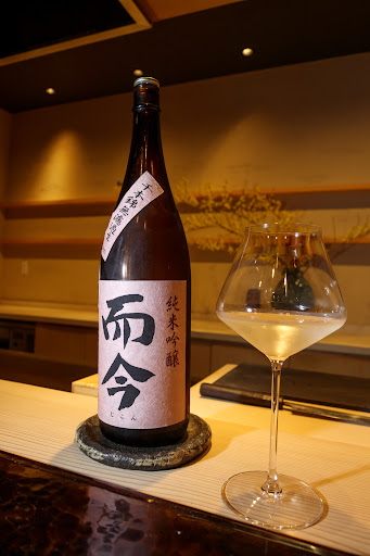 なんとこのお店、「日本酒のソムリエ」がいらっしゃるのです。よくよく胸のあたりを見ると、四角いバッジが付いているので、見てみてください。だからこそ懐石なのに「ペアリング」という発想が生まれてくるわけですね。私はお酒が弱いので2杯のペアリングをお願いしてみましたが、どちらも本当に料理との相性が良く、すいすいと身体に吸い込まれて行きます。