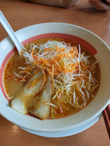 Read more一昨日に初訪問させて頂きました。店着は11時をちょっと過ぎた頃でした。この時点ではまだ空席が多く「お好きな席へどうぞ」、という状態でした。外の景色が見える窓側の四人テーブルに着席。 妻は野菜好きですので味噌味の野菜たっぷりのラーメンと餃子を、私は好きな塩ラーメンを選びました。オーダーは最近では当たり前の端末で行います。(これが私達老夫婦には各企業色々で、大の苦手!?) 味噌ラーメンの野菜はボリュームたっぷりでシャキシャキ感の有る妻好みでした。私の塩ラーメンは特に味に特徴は有りません。淡白な味のチャーシュー二枚、普通のメンマ四本、海苔一枚、ネギのトッピングです。(まっ490円ですから普通でしょうか) 餃子は小ぶりで特に特徴は有りません。 麺は中太です。麺の選択は無く、小食な私達は二人して麺・スープを完食には至りませんでした。 十一時半過ぎには満席になり、「名前を書いて、お待ちください」の店内放送が度々流れていました。主要幹線で近くには企業も多いのでガテン系の皆さんと企業で働く皆さんでランチ時はスタッフの皆さんは大変そうです。 スタッフの皆さんはハキハキとした接客で気持ち良く食事を頂きました...