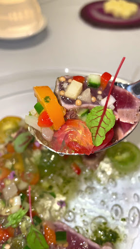 ●前菜 Ton rouge Etaler 三崎漁港のマグロとトマトの彩り トマトのジュレを添えて 小さく切った野菜のドレッシング