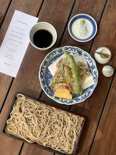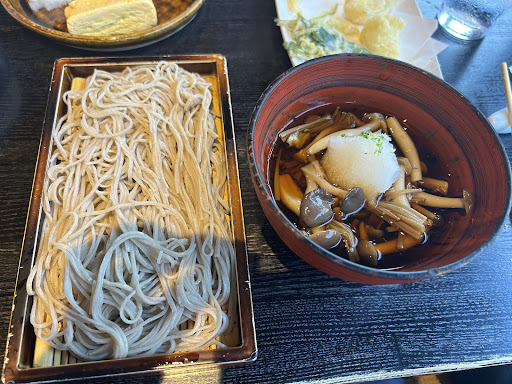 Ordered cold soba, with mushroom sauce, seafood tempura melody, omelette and seared duck.