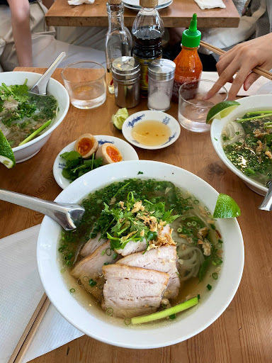 A small restaurant able to seat about 15 people with a bright, beautiful, minimalist styling. While the name of the restaurant suggests that it is a Vietnamese restaurant (it primarily is), the menu with about a dozen items includes dishes from Thailand as well (Khao Soi). When I go, I always end up ordering my favorite items...Chicken Pho, spring rolls and home made ginger ale...a truly delicious combination, in my humble opinion.