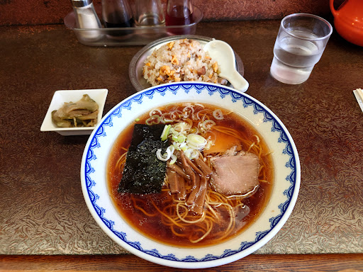 Read more〜昭和の40年代生まれにはノスタルジック。Z世代にはエモーショナル。昭和を感じずにはいられない鎌倉の名門町中華。 盛華園@鎌倉市材木座 〜 この日は、レザーパーツをゲットしに鎌倉のスワニーへ。昼過ぎに行ったので土曜日の鎌倉は勿論大混雑である。腹も減っているのだが小町通りは何時もの如くだろう。最近は御成通りも混んでるしな・・・!そうだ。暫く行っていなかった材木座で中華もアリだな!オーケィ、ベイベー!カモンッ、レッツゴゥ!盛華園。 海の方へ向う。同じ鎌倉でも海水浴禁止期間だと人の数が減ってくる。銭湯が見えたし、あの角を曲がれば盛華園に到着だ!今日のランチは?超定番のラーメン&半チャーハンしか有るまい。ではフエードインッ! 材木座。土曜日の14時半ほ先客がなし。はっきり言って暇でした。まぁね。海水浴客居ないし。アド街ック天国に取り上げられた老舗町中華と言ってもこんなものでしょう。大将にメニューを告げる。 まつことしばし。BGMは定番の天井近くにセットされたテレビ。勿論液晶だが。土曜日の午後なのでゴルフを流している。盛華園さんは鎌倉に3店舗。ここ材木座&極楽寺&西鎌倉。西鎌倉はリノベーションしたらしく綺麗だったな。極楽寺&材木座は・・・昭和のままである。町中華としてはソコが良いのだが。小上りとカウンター席のレイアウト。いい感じだ。 先に半チャーハン着膳!ウ~ン、THE昔の炒飯って感じ。漢らしく具材は野菜が無いぜぃ。具材デカっ!勿論パラパラ系ではなくシットリ系。ソレが良いんですっ!おーっ塩気がこんなに強かったか?!ソレも良いんですっ!おや?偶にグリーンピース君がコンニチハ!クラッシックな炒飯はコレだよね! ラーメンも着膳!ワォ!濃い目の琥珀色。淡麗に慣れた今では宇宙の様に暗い!そうです。昭和のラーメンはこうでした!ズルズル。節系がどうとか、多加水麺がどうとかの次元ではなくシンプル イズ...