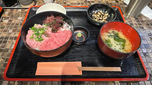 Cozy small eatery which offers breakfast from 7 to 10 am (lunch starts 11). Ordered Shirasu (boiled baby anchovy) don (rice bowl) with tuna tartar (additional) which comes with miso soup and tofu. Tofu was wonderful. The disappointment was that my sushi rice was kind of mushy. The quality of seafood is average. You’ll have much better quality seafood around Tsukiji. Nice...