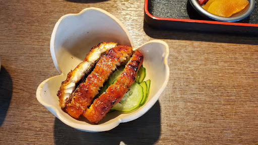 肝心要の鰻ですが、焼き方は関西風の地焼きと言われるもので、身はフワッと皮はパリッとで非常に美味しいものでした。関東風の蒸しを入れる焼き方も美味しいですが、どちらも甲乙付け難いですね💦 追加でお願いした「うざく」は、酢の塩梅が丁度良く、鰻を食べる合間に戴くと、口の中がリセットされて、また鰻が美味しくなると言う悪魔の様なお味でした‼️