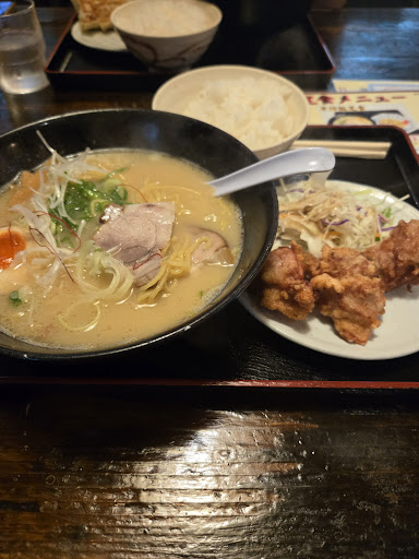 他のテーブル見渡しても唐揚げはみんな頼まれてます。唐揚げは絶対間違いないです。餃子は大した事ないかな。他のクチコミでは麺が不満とか色々ありましたが、美味しかったですよ。スタッフが何人おられるかわかりませんが大手チェーンでないだけに作り手によって味にブレがあるのかもしれません。スタッフの接客はイマイチ、店の雰囲気やホスピタリティーで満足度はさらに上がるので是非頑張ってほしいです。 京都市内からは車でないと不便ですがこのお店おすすめですよ。京都市内の皆さん...