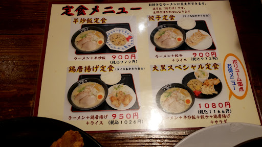 Read more大黒スペシャルセット【ラーメンに餃子3個、唐揚げ2個、チャーハン小(お茶碗軽く1杯程度)、サラダ(キャベツの千切り)のセット】をいただきました。