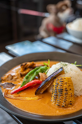 グリーンカレーと、亀岡牛のハンバーグをいただきましたが どちらもめっちゃくちゃおいしい(๑´ڡ`๑)!!