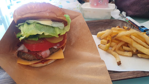 Read more亀岡駅前から京都方面へ抜ける際、いつも混んでるなーと思っていたお店へ初入店。 家族みんなで食べたので チキン南蛮バー、チーズチーズチーズ🧀バーガー、チーズバーガー、自分はビーフ100%のwチーズバーガーにドリンクセット。 肉を焼くのに10分待って‥ 来ました~‼️ビーフ100%と言うだけあって、肉汁じゅわーで熱々。おまけにパンは少し焼いてあるので、パリっフワで美味しい。また、カマンベールが良いアクセントで1000円するけど有りやわー。 夏には少し濃い目のこのうまさ。あっという間に完食です。このてのバーガーは作り手に左右されそうで次も同じ味かちょっと心配ですが‥。 子供が食べた🧀🧀🧀バーガーは、カマンベール、チェダー、削ったチーズのトリプルマッチが最高にうまいそう。削ったチーズはいっぱいこぼしてるけど',、('∀)...