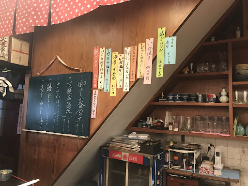 Read more近くのホテルに泊まった折、夜に立ち寄った。 昔はお寿司屋だったのが今は定食メインの様。そんなにガッツリ食べたいわけではないので、入って失敗かなと思ったが、唐揚、焼き魚など料理と小鉢にビールがセットになったコースがあったので注文した。 唐揚が5個も付いてて小鉢も写真のようにいろいろ付いてビールもついてきてこれで¥1000は安す過ぎ! お作りも単品で出してもらったが、小ぶりながら魚は美味しく、他のだし巻きや煮物なんかも、ご主人の昔ながらの丁寧な仕事が伝わってきて、とても美味しくいただけた。 女将さんも気さくで、このあたりでゆっくりお酒と料理を楽しみた...