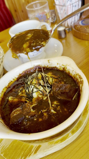 コメダ珈琲店 初体験、初訪問です。 ランチタイムですが、お客さんは疎らな感じ。 俺はビーフシチューで連れは、あみ焼きチキン ホットサンドをオーダーしました♪