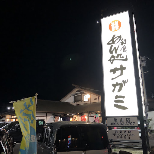 Read moreJR東海関西本線/紀勢本線亀山駅から徒歩約5分、旧国道1号線沿いにある、「そば」と「うどん」が美味しい『和食麺処サガミ』です。 挽きたてのそばを、注文のたびに湯がく。 毎日欠かさず、『朝・夕』とだしを取る。 素材に・美味しさに、お客様の健康に、サガミはこだわり続けます。 出張で亀山市に来たので、晩ご飯を食べに1人で入りました。 20時半過ぎだったので、店内は空いていました。 「カレーうどんと天ぷらミニ丼」をいただきました。 「カレーうどん」の麺は、コシがありました。 スープは、スパイスがよく効いているのですが、コクと旨みが凝縮されていました。 カレー&うどんの幸せのハーモニーが、口の中いっぱいに奏でられました♪ とても美味しかったです♡ 「天ぷら」は、注文してから揚げてくれます! なので作り置きのものと違って、衣が本当にサクサクしていました。 家ではなかなか難しい、本物の天ぷらを味わうことが出来ました。 とても美味しかったです♡ お腹いっぱいに...