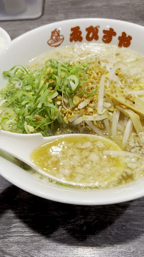 この30年程、全国でまぁまぁ店数の背油ラーメン食べてきましたが、勿論その殆どはラーメンに対して背油が勝り過ぎてるパターンで(それがよいとも言えるんですけど)、しかしゑびすやさんの場合、ラーメンそのものは比較的しょっぱ薄味ベースながら出汁コク&化調アゲが効いており、それが不思議と背油(割と入ってますけど)に負けてない完成度高い一杯に仕上がってると思います。絶妙なバランスです。凝りすぎてないチェーン店系の一杯としては、かなりいけてますね。