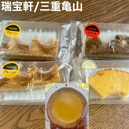 A confectionery shop in Mie Kameyama that is famous for its famous sweets Kamenoo and Baumkuchen since its establishment in the late Edo period. I heard that the rich cheese in balm was featured on TV and is popular, so I tried it as well. Since I came to Kameyama, I take pictures of the Kansai Line train from Kameyama to Kamo. Baumkuchen has soft and hard typesfdepending on the flavor.