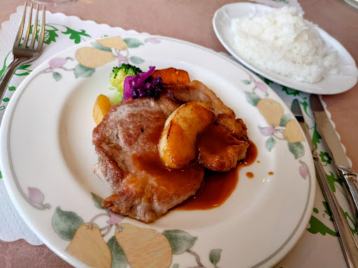 Read more平日のランチで利用 週替りで肉か魚のランチが選べる街の洋食屋かな ちなみにこの日は肉料理が 豚ロース肉のソティー ノルマンディー風 魚はメバルのムニエル グレープフルーツソース これに生ハムサラダかスープとコーヒーがセットで 1,200円 ライス大盛りは+150円 お一人で調理しているのか...