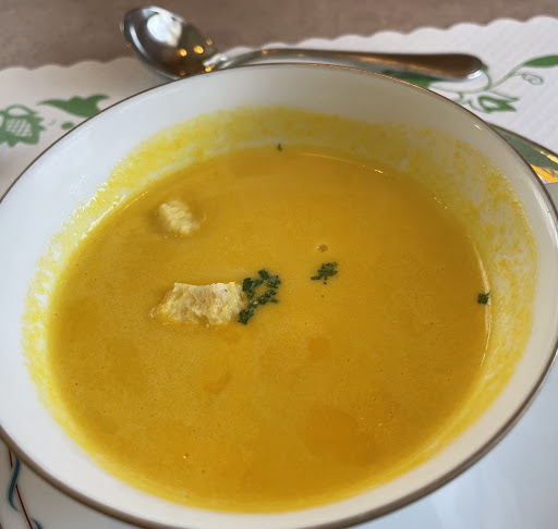 Read more日替定食ランチ990円はハンバーグを選択です。前菜をスープ、付け合わせをご飯にしました。妻はスープでなく生ハムサラダを選択。スープはカボチャのかなり甘いスープで熱々です。ハンバーグは濃い目のソースでご飯と合います。ご飯が炊き立てのように美味しい。食後のコーヒーまで付いて990円なので贅沢言えませんが、ハンバーグ肉汁がもっと欲しいです。 極め...