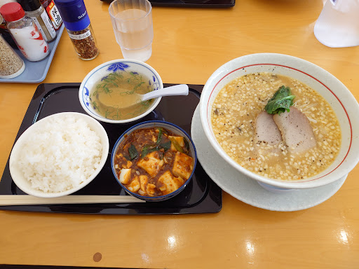 2024/08/21:初訪問 本日、仕事で美方郡廻りのお昼に寄りました。 米地味噌ラーメンと麻婆豆腐が付いたセットを注文。 味噌ラーメンは、クドくない味噌味で刻みネギが浮いているフォルム。 あっさり食べられる感じのライトな味噌ラーメンです。 また、麺はラーメンと言うよりは稲庭うどんのようなツルツル食感の細麺。ラーメンの麺としては好き嫌いが分かれるんだろうか? 私は、嫌いじゃなかった。 あと、サイドメニューの麻婆豆腐がめっちや本格的な味付けで、しっかりシビ辛! 大汗必至だが、ご飯が進む味付けに感動! 薬味の麻婆豆腐専用の辛味調味料を追加したら、風味とシビ辛が増して更に美味しく汗ダクに(笑) 今度は、麻婆豆腐メインで献立を考えよう! とても美味しかったです。 ごちそうさまでした。