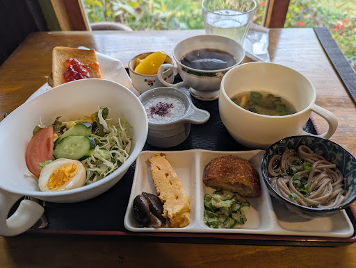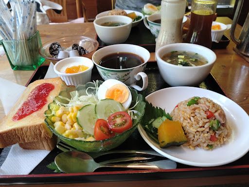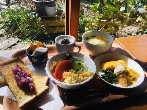 Read more色々な味が選べ楽しめるモーニング。 サラダのドレッシングが、ゴマと梅の2種類。 手作りジャムが、文旦・紫芋・パイン・キウイの4種類、デザートはヨーグルトかコーヒーゼリーから選べる。 気になるモーニングには、小さなお粥や4種類のおかずがあり、様々なものが頂けます。 座敷もあるのでお子様がいる方にもオススメです。それからとっても静かなので、一人で過ごしたい時にもいい場所ですよ。 たまに猫が庭を歩いているの...