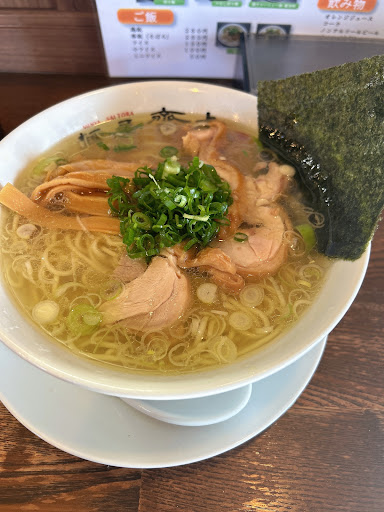 細麺 スープは本当にちょうど良い味の濃さ、単なる塩味でなく美味しさを感じるタイプの塩。個人的には単調に感じたが、美味しいと思う。 スープにネギがもう入ってるので、小ネギじゃなく檸檬とか大葉に乗せた柚子胡椒とかだと味変効果で飽きずに食べられるかなぁと。 鶏の旨味がスープに溶けている感じはなく、チャーシューも付け合わせに留まっている印象。 麺は角麺で腰が強く結構硬め。海苔うまい。