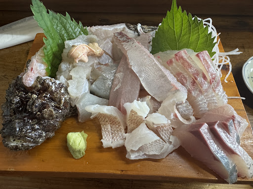 Read more土日しかしていないらしく魚も獲れるときにしか営業できないみたいで、昨日やっと獲れたとのことで営業できたと言われてました。駐車場は店前と横の砂利に停めていいとのことでした。 カウンターに座ると目の前で捌いていかれ楽しめますಠ‿ಠメニューは提示されなかったんですが刺身定食一択で来てたんで注文。 フグ等の刺身盛り合わせで、1切れずつワサビをつけながら贅沢な気持ちで食べれて、とても美味しかったです!食べている時に活き造りのオコゼ?の口やヒレが動いてビックリしましたが(ㅎ.ㅎ...