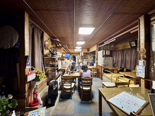 晚上趕在店家休息前45分鐘抵達,當時從外面看以為沒有營業,所幸我們抱著問看看的積極度,在店內看電視、也把招牌收到店內的師傅發現我們了,開門招待我們入內用餐。在這裡三天的經驗是鄉下人少,許多店家早早就休息了,通常都是中午客人會比較多,因此我們也等於是不用等候就能馬上入座點餐。