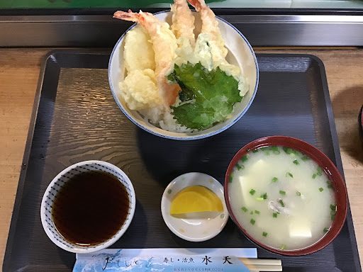 據說海鮮丼套餐是招牌且數量限定,老公已經指定要吃,還好還要;我們另外點了豬排飯套餐、炸蝦天婦羅套餐、冷豆腐、蒸星鰻、單點三隻炸明蝦。 海鮮丼很新鮮,當日使用的食材會寫在白板上。 豬排套餐是長輩點的,說好吃。 炸蝦天婦羅量不少,外酥內軟,不會硬到劃破口內皮膚,口感很好,女生可能吃不完。 冷豆腐豆腐味很濃郁,感覺是傳統手工,夏天吃很爽口。 蒸星鰻是冷的,當作冷盤,是第一道先上,皮的部分很脆口,魚肉部分有很鮮嫩,放上的兩種醬分別是梅子醬和桔子醬,梅子醬比較鹹(有時候用餐會發現日本料理有的其實蠻鹹的),橘子醬比較剛好,我們都覺得蒸星鰻沾橘子醬最好吃,我先生則覺得沾梅子醬別有一番風味。 天草養殖明蝦很有名,先生特地要吃明蝦,其實新鮮就很好吃。蝦體中等,鮮甜。 特別要提及套餐提供的白米飯,我們一致都覺得非常好吃,而且很大一碗,碗看起來不大但很深,不要輕易加大喔(要加價),真的會吃不完。