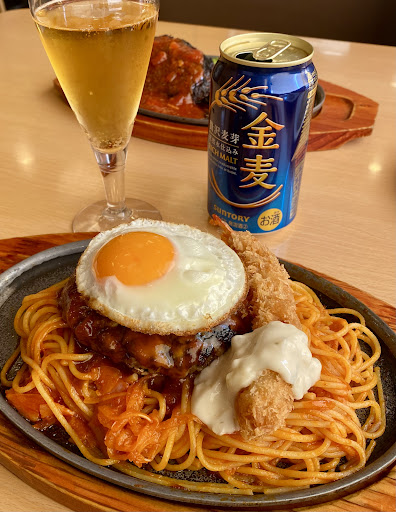#期間限定メニュー 鬼滅の刃とのコラボ #山盛りチーズハンバーグナポリタン ¥1.098 ライスセット ¥262-