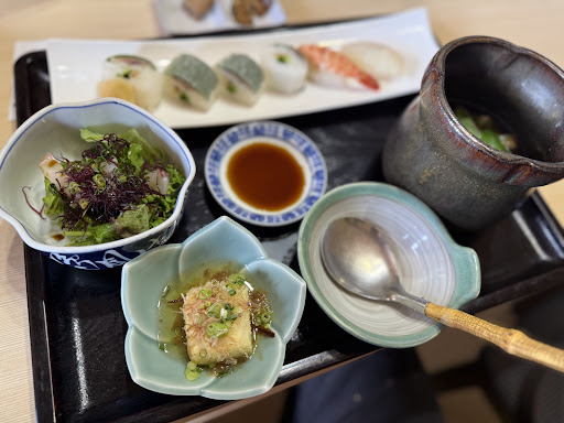 Read moreたびたび行かせてもらってます。今回はランチで行ってみました。私はばってら寿司とダゴ汁。連れは海老天丼とダゴ汁のランチを注文。ダゴ汁は醤油と味噌があるとの事でそれぞれ違うものにしました。 やはり美味しいです。ばってらは大根で包まれていてあっさりしていても素材の旨みを感じられます。サラダにも魚が入っていて、ドレッシングが旨みを引き立ててました。ダゴ汁は、安定の美味しさ。一つだけ私好みでないのは握り寿司が割りとシャリをしっかりと握ってある感じの握りかたな事かな〜それ以外は大満足で料亭の美味しさです。 連れの天丼もマエビが入っているとの事でグレードアップしてもらって、プリプリ!衣よりもエビの比率が断然大きいと連れも感動。なんでも「なんで天草でダゴ汁?」と思っていたらしいのですが、「美味しくて驚いた!」と言ってくれて連れて...