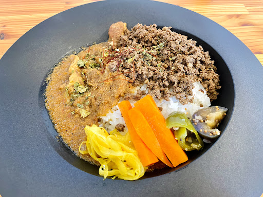 午前11時過ぎの開店直後に入店したら、先客5人いました。鹿肉カレー大盛りとクラフトジンジャエールを注文し、しばらく待つと着皿。 クラフトジンジャエールは透明感あるので脳がバグるがちゃんとジンジャエールの味がして美味しい。 鹿肉カレーは、鹿肉がホロホロで、よく煮込んでいるのがよくわかる。 鹿肉の臭みはなく、カレーと相まって美味しい。 カレーは、スパイスが効いているのに辛さは控えめで美味しく、小さい子供やお年寄りでも美味しく食べることができそうだ。 辛めが好みの人は、テーブル上にあるチリペッパーで辛さを調整できる。 お店は、新店なので綺麗で清潔感溢れており、トイレも新品で綺麗だった。 カウンター3席、2人席テーブル1つ、4人席テーブル1つと合計9人席で、こじんまりとしているが、ホールは余裕のある広さで開放感があり、ゆったりと食事ができる。 食後のスパイスコーヒーも秀逸で美味しかった。 ワンオペなので、配膳は店主が行うが、お水はセルフで、食後の食器もセルフで棚に下げる。 カレーの味自体は、サッパリとしていて後を引かないが、毎日食べることができるような味であり、何回通っても飽きが来ないだろう。 メニューは、ときおり変わるらしく、鹿肉カレーは最後の方であった。 今、違うカレーを仕込み中らしいので、また...