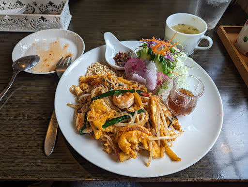 Read more市川在住の友人が、美味しいからとランチに連れて行ってくれました。 平日の昼時でしたが昼休みの男性客も多く、いつも車が何台も停まっているとのこと。 駐車場は広く5,6台停められると記憶しています。 以前タイ旅行でタイ料理に撃沈して以来、苦手意識のあるタイ料理に内心ドキドキ。 手作りメニュー表には、写真&説明が丁寧に書いてあり、辛さ・タイ料理初心者向け〜上級者向けなど親切な表記があり、とてもわかりやすいです。 辛くない海老と卵・玉ねぎなどの炒めもの(名前忘れました)でしたが、大きいエビがふんだんに入っていて、海外の親子丼のような優しい味でとても美味しかったです!タイ料理のイメージが良いものに変わりました♫友人が食べていた辛めの炒飯も美味しかったです。 シェフさんの腕がいいと思います。 お店の一角にはタイの民芸品やカゴ細工のしっかりしたバッグなどがかなり良心的なお値段で販売しています。他で買うよりお安いと思いました。 また行っ...