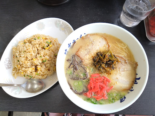 Read more何かラーメン食べたくなります運転してたら明かりが灯ってたので立ち寄りました。 昔行った記憶で美味しかったイメージあったので行ってみました。 コロナ禍の中、早めに閉まる店が多い中23時過ぎても開いてたので助かりました。 深夜働いてる方々って休憩や食事困ってるだろうなとか思ってしまいます。早く落ち着いた世の中になって欲しいですね。 店内入ると忙しくオーダー取ったり片付けたりラーメン運ぶ方、無言でラーメン作る方の極端な2人で営業されてて何か面白かったです。 床は豚骨の油で滑りやすくなっていました。最近の店では床豚骨油はあまり無いので何だか懐かしく感じました。 ラーメンもギョーザも美味しくはありましたが、ありふれた感じもしました。 昔はラーメン屋さん今より少なかったからかな。 ラーメン食べたい時...