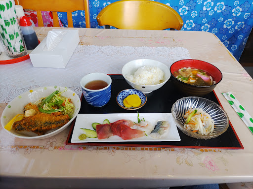 Read more知人より勧められたので訪問。 メニューはあるが、現在「日替わり定食(1,000円)」のみの提供となっていた。 本日はフライ定食で、メインに刺身・小鉢・ご飯・沢庵・うどん(本来はお味噌汁なのだが訪問時大寒波で寒すぎたためご厚意でうどんになりました)がついてきて、これで1,000円!?安っ!! まず、フライは外はサクサク中はフワフワで凄く美味しかったです。付け合わせのキャベツの千切りにあまめのチリソースがかかっていてご飯がめっちゃ進みました。 うどんは、一口うどんみたいな感じで量はそんなに多くなかったです。具材は、肉・カマボコ・とろろ昆布と柑橘(多分柚木)の皮が入っておりあっさりしていました。 刺身もおいしく、小鉢の酢の物も良く酢...