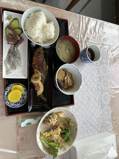 Read more開店同時に入店 初見ではカーブの途中なのでわかりにくい。 日替わり注文 今時期はサヨリ推しの様子 10分余りで出来上がり! 刺身、煮付け、天ぷら、肉じゃが、味噌汁、お盆にはのりきってない ザ、家庭料理だ! 実家で食べている感じです😊