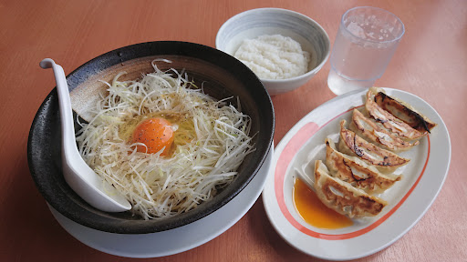 2023年7月。お昼にまぜめん風ねぎ玉中華そばギョーザセットいただきました。麺後のまぜまぜご飯も良しです。さらにギョーザ✨。とっても美味しかった~。😋🍀