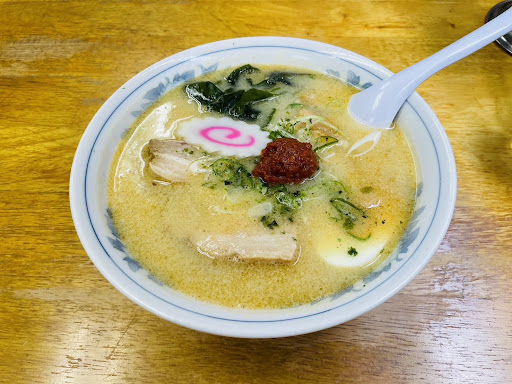 お店の構えは、ノスタルジックな町の飲食店スタイル。最初は思わず通り過ぎちゃえくらいでしたw 白味噌中華は、辛みそがレンゲに乗ってきます。別盛りも出来るみたいです。 辛味噌をどけて、まずはプレーンな白味噌中華スープをすすります。まろやかで、コクのあるスープです。次に辛味噌を溶いて、またすすります。 こっちの方が断然旨い❣️まろやかな白味噌が絡みで更に引き立ちます。トッピングは、ネギ、ワカメ、メンマ、チャーシュー、ナルト🍥ですけど、チャーシューがトロっとしてて旨い。 麺は中太縮れでやや硬めのコシあり。 この縮れがスープを引き揚げてくれて、旨さが口の中に広がります😍 是非、背脂ギトギトのラーメンがつらくなってきた中高年の方は、食べてみて下さい!俺はスープまで完食でした!! リピートアリですね。