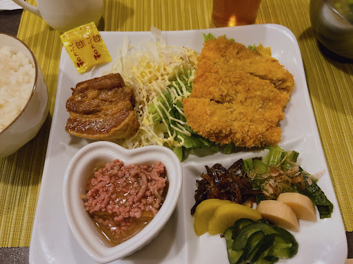 Read more初めて伺いました。 隣のラーメン屋さんに寄った時から気になってました。後日伺いましたら閉まってましたので、また来ました。 お魚が美味しいお店の様ですが、お腹が空いた時に角煮、トンカツの文字を見て負けてしまいました笑 選べるプレートのお肉をお願いしました。