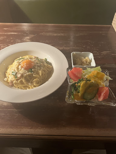 しばらくすると、カレーが出来ない旨伝えられました。申し訳無さが良く伝えてきて、パスタに変更を快くすることに。 ハヤシライスはできるとのことでしたが、カルボナーラにしました。