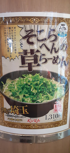Read more前回は上がりの方に立ち寄りました。深谷ネギラーメンを頂きに訪問しました。 今回は下りへやってきました。 下道から入場です。ゲートはありません。 従業員専用入り口ぽい所があります。 こちらドア開けて入ります。 お土産屋さんに繋がっていました。 店内は上がりと同じ作りになっています。 お土産屋の隣にフードコートです。 蔵仕込みラーメンの券売機へ。 「翔んで埼玉」コラボラーメン限定販売だと。 その辺の草ラーメンって1310円 その辺のラーメンより高い。 こちらをチョイス。 まんま草でした(笑) ネギ、万能ネギ、ニンニク、水菜、なぜか春菊も入ってました 焼豚チャーシューがゴム見たい もう食べる事は無いです。 春菊合わない。 この値段なら他店では、餃子、...