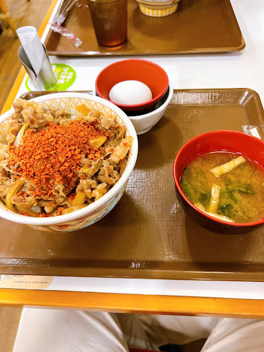 Read moreちょくちょく夜遅くに利用しています。いつもは何の問題も無く普通の静かな店内、接客でしたが、前回利用した時は、忙しかったのか。。店内に若い女の子の賑やかなグループが食事をしており、そのお客様達と男性の店員さんが話をしたりしていた影響なのか。。いつもは、注文したメニューがきちんと提供されるのに、つゆぬき&ねぎだくの牛丼は、しっかりつゆだくで提供され、私はつゆだくが苦手なので、作り直してもらいました。その際の男性の店員さんは、何か心ここに有らずな雰囲気でした。そして作り直してもらっている間に目に止まったのは、紅しょうがの瓶の周りに散らばっていた、いつからあるのかわからない位にカサカサに干からびた紅しょうが。まぁこんな日もあるんだなと感じた日でした。普段は問題ないので、...