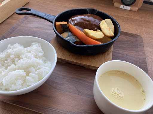 オススメはハンバーグとの事だったのでこの1000円のプレートを注文しました。 ご飯とコーンスープは別料金で400円。 おかわり自由とのことです。 ありがたく、おかわりさせて頂きました。 その質と内容についてはハンバーグはそんなにボリュームのあるものではなく、品質が良いのか悪いのかよくわからない。肉汁は確かに出てきましたがソースが美味しいものではなく、もしかしてお肉の質が良くてもソースでマイナスにされてるのかもしれません。 ご飯は悪くはなかったです。普段自分が食べている【ゆめぴりか】と比べると少し質が落ちますが炊き方、食感は十分かと思いました。 コーンスープはスーパーで売っているものと同じかと思いました。洋食レストランのようなしっかりしたものではなく残念でした。 ウェイトレスの女の子は気を配ってくださって優しくて可愛かったです。 残念なことにどなたかも書いておられましたが厨房に何人いらっしゃるかわからないのですが50歳以上位の女性たちの声がものすごく響いていて不謹慎でした。 めちゃくちゃ勢いよくしかも大声でひっきりなくお喋りしていてその人数は1人や2人ではなかったように感じました。 これはオーナーさんの監査が必要じゃないでしょうか。