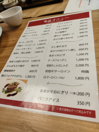 Read more今日(9月28日水曜日午後1時20分)に行きました、午後一時30分ラストオーダー。午後2時終了で時間のゆとりは有りませんでした、日替わりは1050円です、他に単品で天ぷら盛合せとポテトフライ。レモンサワー2杯で、会計4900円です、お手頃です、近々10月の前半(日付未定)、カラオケ🎤が出来る部屋がオープンするそうです。運が良ければオーナー様の超高級車(外車詳しくないので車種はごめんなさい)小見川大橋を小見川方面より渡って1個目の信号を右に曲がって500メートル程走行して右側に看板...
