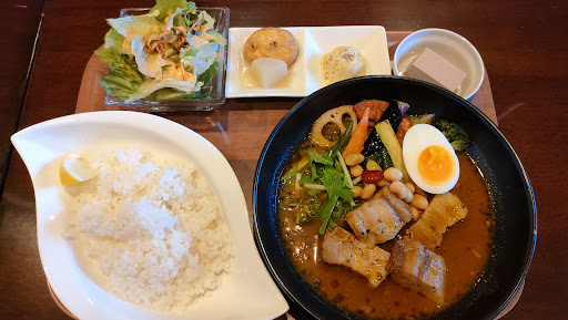 Read moreカレーは数多く食べてきたが3本の指に入る一店。 ランチメニューも、浮気したくなるようなラインナップだが、本命のスープカレーが兎に角美味い。 良いから黙って食べてみ?トぶぜ? 副菜のサラダも凝ってるものが出てきます。 一番美味かったのは燻製ベーコンのポテサラ。 因みに何種類かあるスープカレーの中でもオススメは角煮スープカレー。 てか、スープカレーで角煮ってここでしか見たことない気がする。 夜はしじみラーメンもある模様。 一度...
