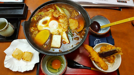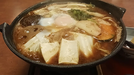 Read more近くのホテルに宿泊時、夕食探しでこの地図にて発見。 某テレビ番組にて地元民に愛されるローカルファミレスチェーンとして紹介されていたのを覚えており、興味が沸いたので行ってみることに。 平日の20時過ぎでしたが3、4組ほどの待ちがあり、私の後にも更に3組待ち。 なるほど愛されているなと感じました。 看板メニューが煮込みうどんのようでしたので、味噌煮込みうどんにトッピング少々とミニ天丼をつけて注文。 正直特筆するほど美味い!というわけではありませんでしたが、それでも美味しく長年親しまれている味なんだろうなと納得できるものでした。 中々のボリュームでしたが、色々な野菜類が載っている為ということもあって、食後の妙な罪悪感をあまり感じなかったのも良いところではないでしょうか。 茨城県内各所にあるようなので、県外から来て飯に迷ったら1度は訪れて損はないのではないかと思います。 問題点を挙げるなら、汁とび防止の藍の前掛を出されたのですが、これが所々に白い毛玉のようなものが・・・これには些かゲンナリ。 キチンと管理できないのであれば、紙エプロンでも出した方が良いのではないかと思いました。 ただこれはおそらく運営側の問題であり、店員...