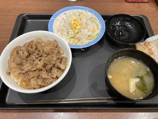 Read more牛丼(牛めし)が食べられるチェーン店の中で一番リーズナブルだと思います。 味噌汁は無料でついてくるし、生野菜サラダは150円です。 セルフのお茶も冷たいのと温かいのが選べるのが良いですね。 この価格でこれだけ食べられれば満足です。