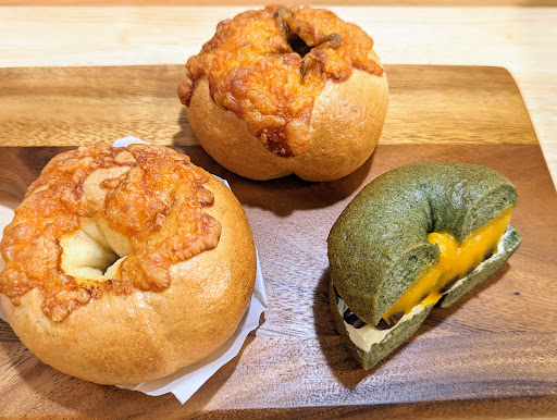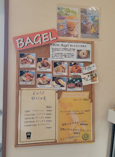 私感としてはハードでもちもちなので食べごたえのあるベーグルです。 店頭にないものもメニューにあるものでしたらその場で作ってくれます。 シンプル系にあんバタ等の甘味系、チキンやポーク等のメイン系が有りその時の気分で食べたいものを選択出来ます!