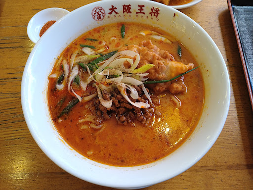 Read more2016/9訪問 友人と出かけたお昼時。 腹ペコなのでお食事処を探していたら、大阪王将を発見。 王将には入った事が無いので入ろうと言う事に。 五目あんかけラーメン2、中華そば、辛味噌ニンニクねぎラーメン、餃子2、生中2を注文。 まずビール。 冷え冷えで美味しい。 次に私の中華そば。 なんかちょっと、質素な感じ。 味も、業務用って感じ・・・。 スーパーに売ってるような麺と、普通のスープ。 モヤシ、メンマ、チャーシュー1枚、のりが乗っていたかな。 美味しい冷凍ラーメンの方が好きかも。 主人の辛味噌なんたらも、ふ~~んって感じだったそうな。 餃子は美味しかったです。 王将って聞くと、早くて美味しくて安いイメージでしたが、味と見た目は大したことないし、値段も主人の辛味噌なんらたが800円超えで、五目あんかけも800円近いしで、だったら他のチェーン店でいいかなって感じ。 餃子だけが...