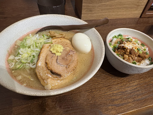 Read more昼過ぎに入店。客ゼロ 着席後すぐ注文を聞かれたので、とりあえず味噌に辛ネギトッピングを注文後、無料の卵を一つ殻を剥き終わる前に着丼笑 ほんと卵殻剥くの嫌い •́ .̫ •̀ だから普段食べない スープは岩見沢の一平さんに味噌味は近い感じがしました。雰囲気も似てますね。しょっぱいと思う手前な濃い感じは好きでした。麺は奈井江岩見沢のがんてつさんに近いと思いますが個人差ありますのでなんとも言えませんがおいしいです。トッピングしたネギが100円でしたが、も少し量欲しいと感じました。山岡家のクーポンのトッピングの量までとわ言わないですが、少し物足りなかったです。子供用の器、椅子もありました。水はセルフで座る席にしか水ボトルありません。席一つ一つに欲しい私はガッカリしました。カップはプラスチック製です。すぐ悪臭するので気をつけて欲しいですね。全体を見渡したかったので入り口側のガラス近くの席に座りましたが、日光を遮る物が付いて無く、直射日光やばかったですね。夏は絶対座らない方が良いです。駐車場ですが、建物に向かって右、建物側面に斜め止めする感じでしたが、今の時期、春秋、雨の時は泥がドロドロでした。接客は注文即聞く以外は二重◎ ...