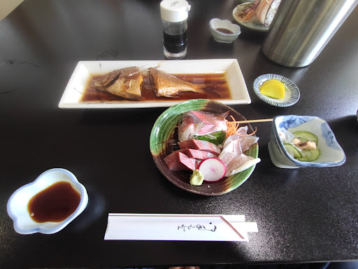 Read more紹介されて行ってみました。 ここはほぼ全てのメニューが日替わり(その日取れた魚によって変わる)らしいです。 メニューかなり迷いましたが煮魚(真鯛)定食、刺身付を注文、注文が入ってから煮るので少し待ちます、20分ぐらいでしょうか?小鉢、味噌汁、刺身、煮魚が来てそのあとご飯が来ました。ちなみにご飯大盛りは無料だそうです。 刺身は食べた瞬間甘く身はプリプリです、煮魚も味付けは丁度よくご飯が進みとっても美味しいです。 煮魚は骨とひれ以外は全部食べられます、今まで食べてきた海鮮の中でもかなり美味しかったので近くに来ることがあればまた是非食べに行きたいです。