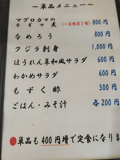 お料理は品数は多く無いけれど 限定5食のマグロのカマ焼きや 刺身3点盛りなど...