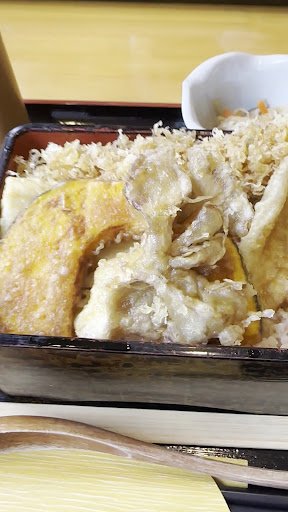 Read more平日のお昼の開店と同時に伺いました。 定食から丼ものラーメンなど色々なメニューがリーズナブルで悩みましたが、天重とミニラーメンを注文しました。 まず天重はごま油で揚げられた本格的な天ぷらで、エビ、キス、イカ、舞茸、かぼちゃと沢山の天ぷらがどれもネタが良く最高でした。特にエビは重からはみ出るほどの大きさで揚げ加減も良く大満足。 この天重で1050円は、なかなか無いと思います。 ミニラーメンも和風よりの出汁でしっかり美味しいラーメン。